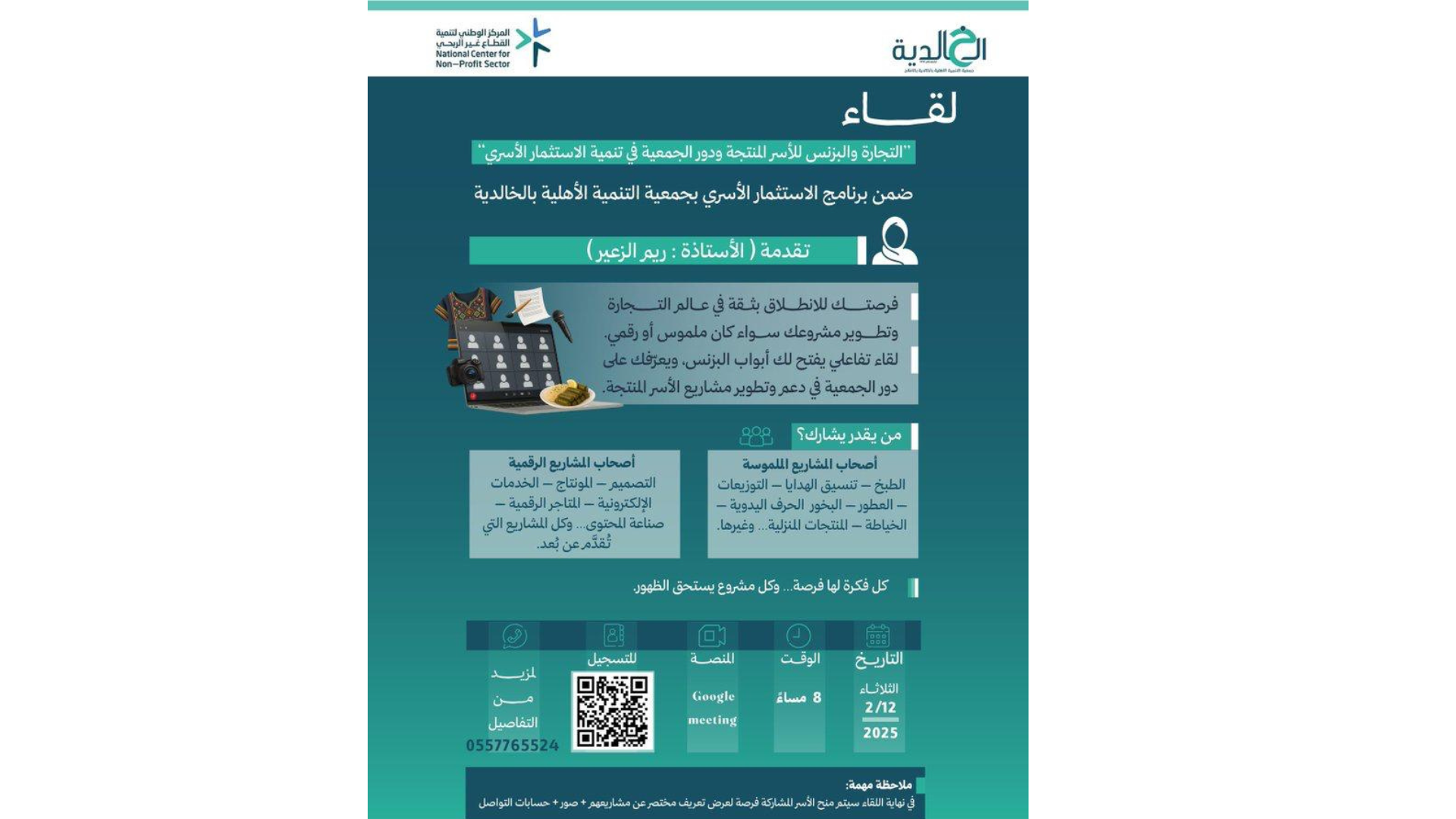 لقاء التجارة و البزنس للأسر المنتجة و دور الجمعية في تنمية الاستثمار الأسري